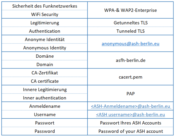 Es öffnet sich das Fenster zur Eingabe der Anmeldeinformation für die Nutzung des WLANs: