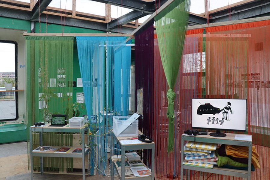 The pavilion is part of the nGbK's 'station urbaner kulturen' site in Hellersdorf. The nGbK is making the pavilion available to the 'Zwischenräume' project until December 2026. 'Zwischenräume' is part of 'Transfer-Hub im Campus-Transferale (CaT)' from 2023 to 2027 at the Alice Salomon Hochschule Berlin. The installation of the nGbK pavilion on Alice-Salomon-Platz was supported by the Marzahn-Hellersdorf District Office and the Senate Department for Urban Development, Building and Housing.
