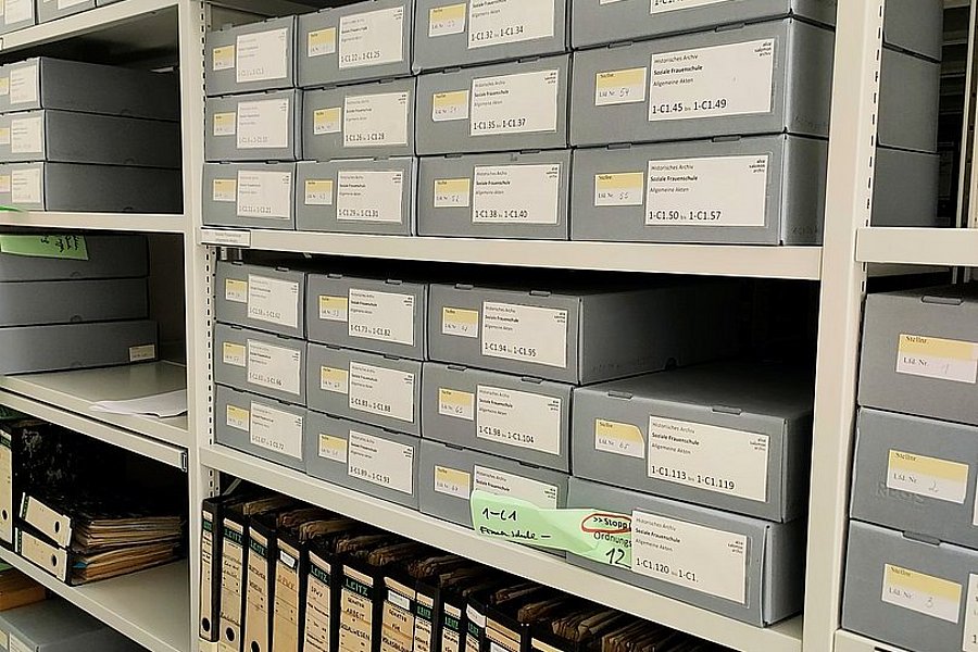 Das Alice Salomon Archiv ist nach intensiver Vorbereitung am neuen Standort nun am Kokoschkaplatz in Hellersdorf angekommen. Die Archivbestände sind ab sofort im neuen Magazinraum im Erweiterungsbau der Hochschule untergebracht. Zur dessen Grundausstattung gehört eine Rollregalanlage und ein Klimaschrank. Die Archivalien, unter anderem Akten der historischen Vorgängerinstitutionen der ASH Berlin, umfangreiche Unterlagen von Angehörigen Alice Salomons sowie Vor- und Nachlässe diverser historisch Forschender verfügen damit über deutlich verbesserte konservatorische Bedingungen im Vergleich zum vorherigen Standort.