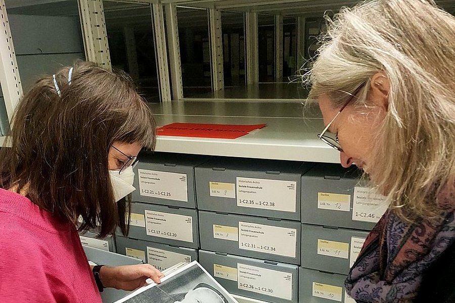 Neben dem Archivgut hat auch das Archivteam neue Räume bezogen. Bis zum Einzug ins 5. OG des Erweiterungsbaus findet man die ASA-Mitarbeitenden im dritten Stock des Erweiterungsbaus. Ab Mai ist erstmals die Nutzung des Archivs in Hellersdorf möglich. Am „alten“ Standort in Berlin-Schöneberg entsteht zugleich in Kooperation mit dem Pestalozzi-Fröbel-Haus Berlin ein Lernort für verschiedenste Themen im Bereich der Geschichte Sozialer Arbeit. Mit Unterstützung durch den Bereich Qualitätsmanagement und Entwicklung in Studium und Lehre der ASH Berlin erarbeiten ASA und PFH aktuell Konzepte für eine innovative, digital gestützte Ausstattung des Lernortes. Ab Juli finden wieder archivpädagogische Lehrangebote statt.