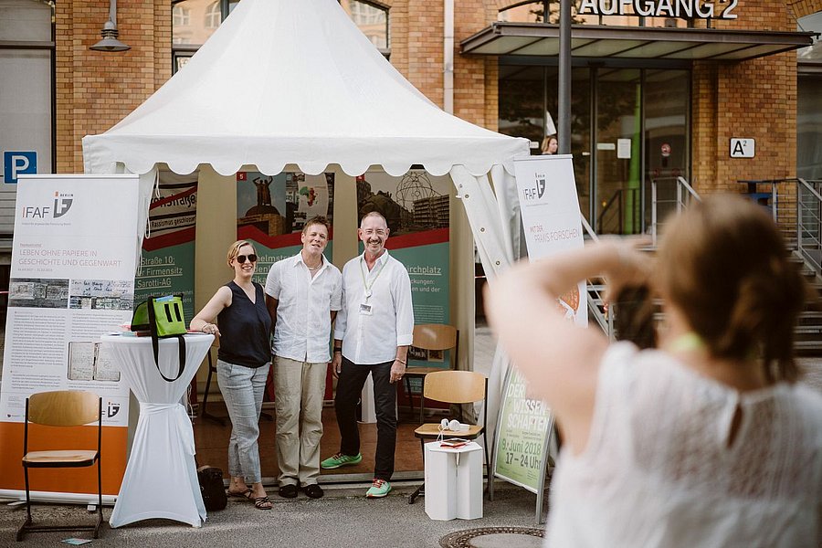 Das IFAF Berlin fördert Forschungsprojekte der Fachhochschulen mit Praxispartner_innen in Berlin. Zahlreiche dieser Projekte haben ihre Ergebnisse und aktuellen Arbeiten auf der Langen Nacht der Wissenschaften bei der HTW Berlin in Vorträgen und Mitmachexperimenten präsentiert. Die Themenvielfalt spiegelt das breite Förderspektrum des IFAF Berlin wider. So konnten Besucher_innen beispielsweise in einem „Holodeck“ das gemeinsame Arbeiten in einer virtuellen 3D Umgebung (einer so genannten Cave) üben, sich über die Zukunft der digitalen Wäschepflege informieren, im schallarmen Akustikraum über die Optimierung des Orchestergrabens der Deutschen Oper Berlin lernen, sich in einem Audioguide für den Stadtteil Berlin Mitte über die Geschichte unfreier Arbeit und Rassismus in Berlin informieren und vieles mehr.