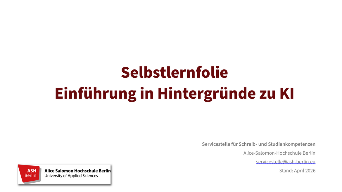 Die Nutzung von KI-Tools im wissenschaftlichen Arbeitsprozess bietet viele Möglichkeiten aber es entstehen auch große Unsicherheiten in Bezug auf die Einsatzfelder und den generellen Umgang damit. Daher haben wir zunächst eine Selbstlernfolie zusammengestellt, über die ihr euch einen ersten Überblick verschaffen könnt.