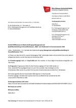 Informationen für Bewerber/-innen mit Zulassungsbescheid für den Masterstudiengang Management und Qualitätsentwicklung im Gesundheitswesen